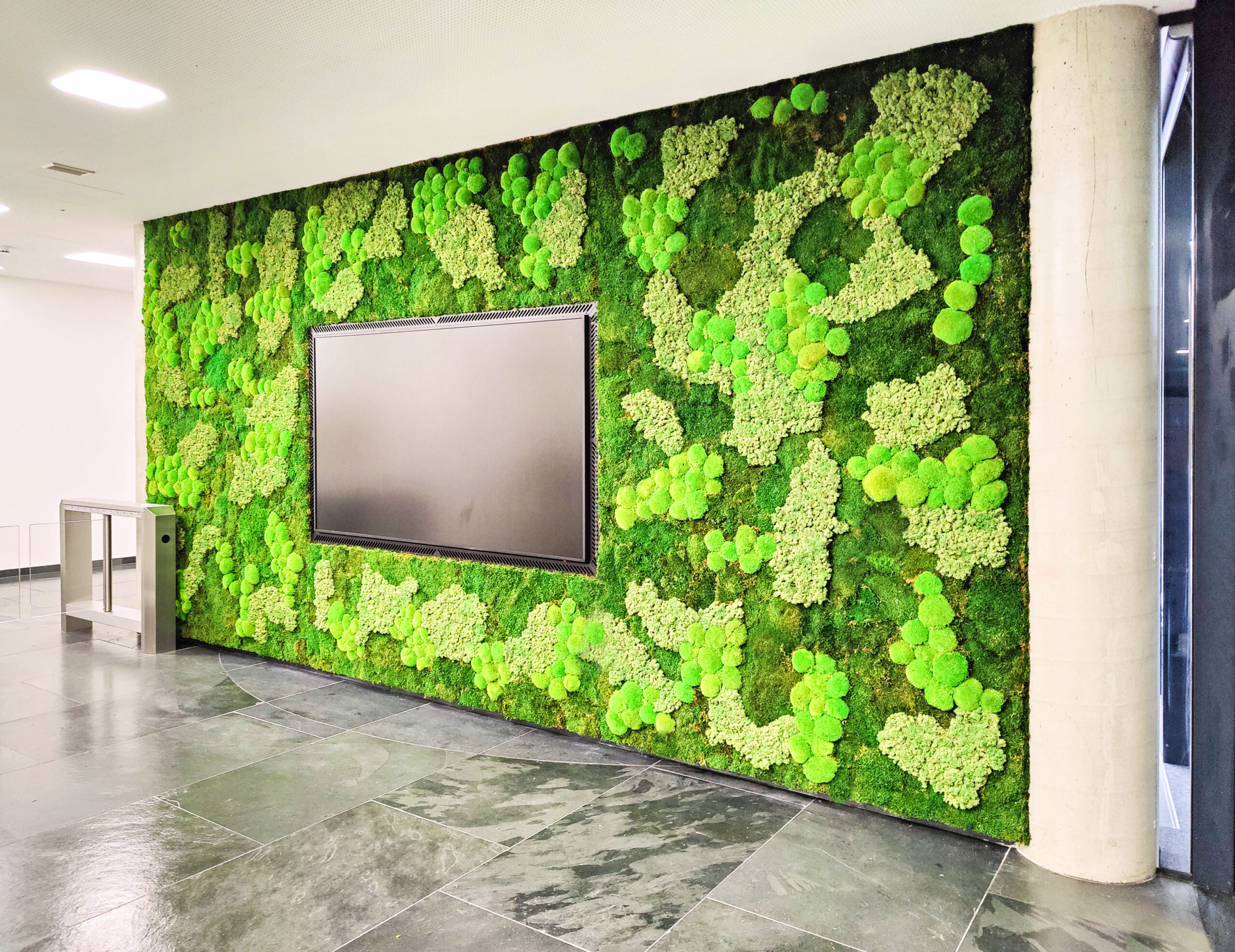 Bollmoos oder Ballenmoos ist ein Moos aus den Bergen. Die spezielle Wuchsform verleiht dem Moos den Namen Boll oder Ballenmoos. Mit unseren Europäischen Produzenten können wir auf eine Vielfalt von verschiedenen Bollmoosfarben und Formen zurückgreifen und unserem Kunden einzigartige Kunstwerke schaffen. Bollmoos in einer Farbe, im Farbenmix oder im Mix mit anderen Moosarten schaffen wir UNIKATE für ihr Projekt. Unsere Partner vor Ort schaffen mit Ihnen einzigartige Wände oder Bilder für Ihr spezielles Moosprojekt. Das Portfolio der Gestaltung ist sehr groß. Logo einbauen, Schriften oder spezielle Übergänge von hügeligen Charakter bis zu Landschaften in verschiedenen Kombinationen stehen für Sie bereit