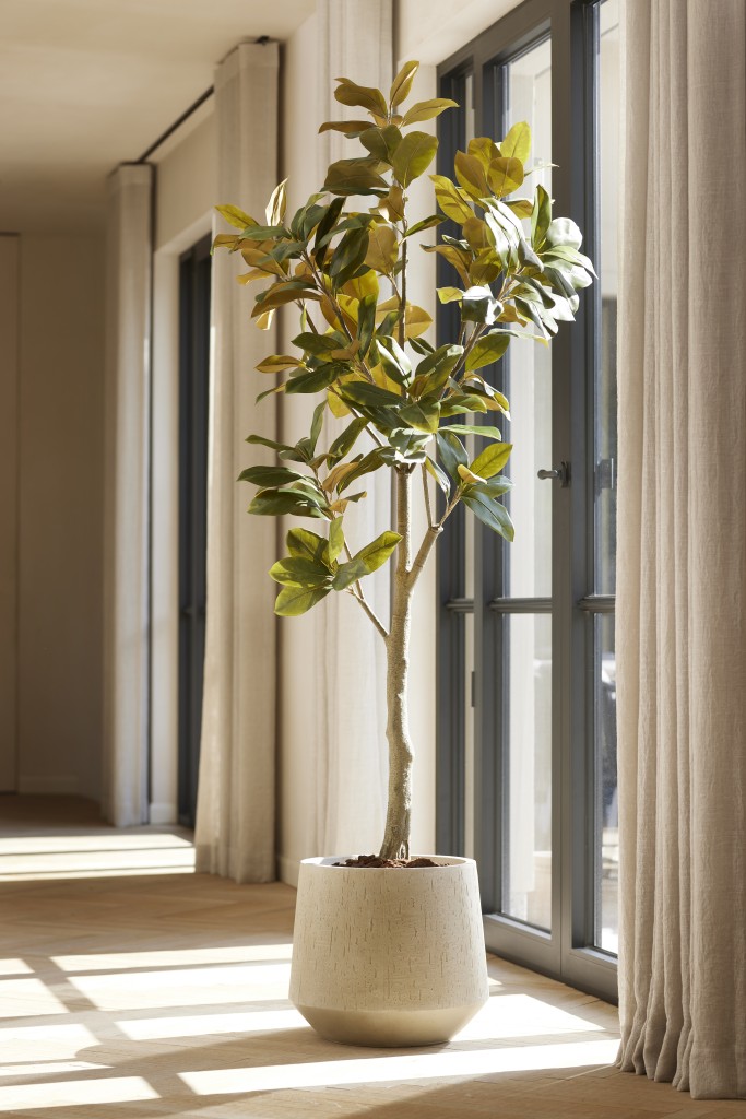 Kunstpflanzen Arrangements mit schönen Gefäßen und einer Solitärpflanze als Olive , Ahorn, Eiche oder Birke sind immer ein Blickfang